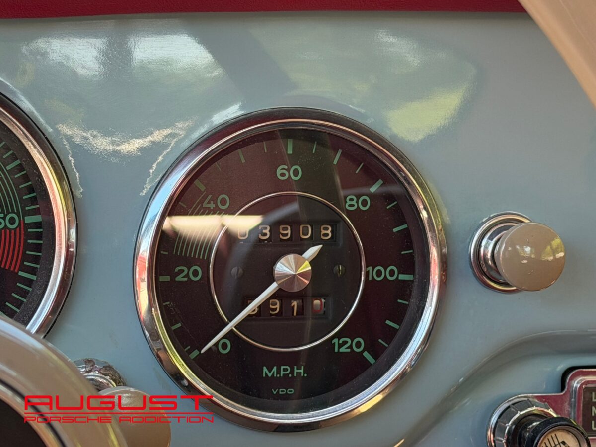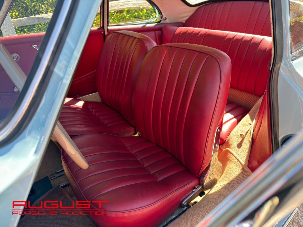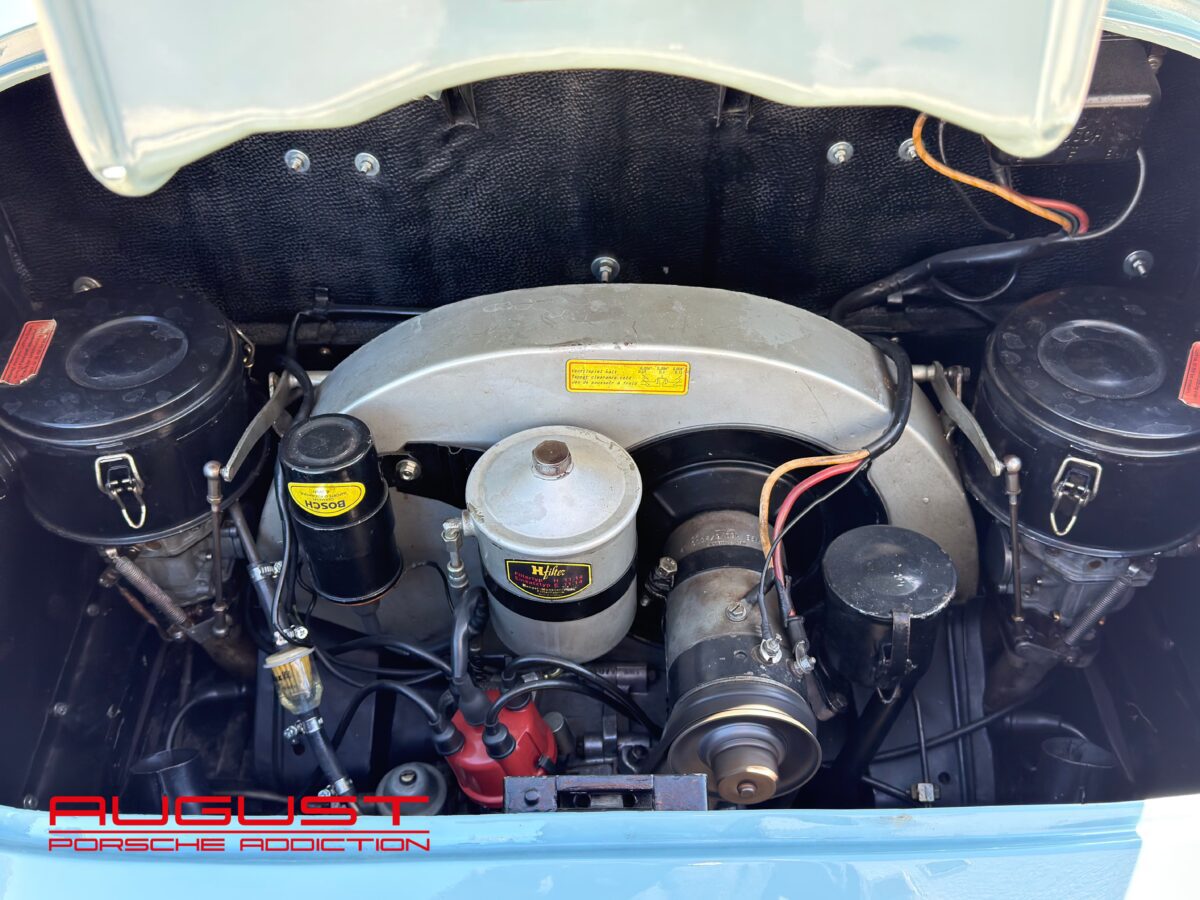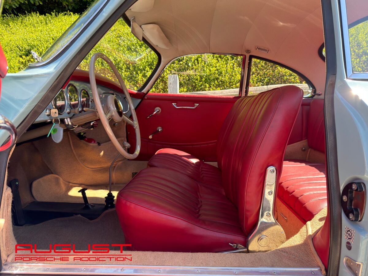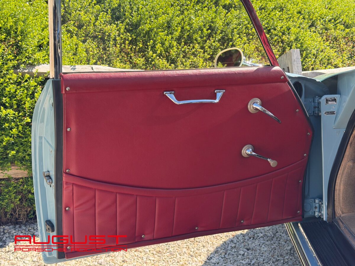 Porsche 356 A 1600 de 1659 présentée dans son authentique teinte Meissen Blue intérieur Rouge. Connue chez August, cette première série de la 356 au caractéristiques spécifiques ; feux plongeants sur les ailes avant et pureté du dessin a fait l’objet de toutes les attentions par son dernier propriétaire qui s’en servait exclusivement pour de beaux évènements lors d’exceptionnelles conditions climatiques. Extrêmement bien conservée et suivie, cette Porsche historique s’adresse aux amateurs avertis et aux collectionneurs.