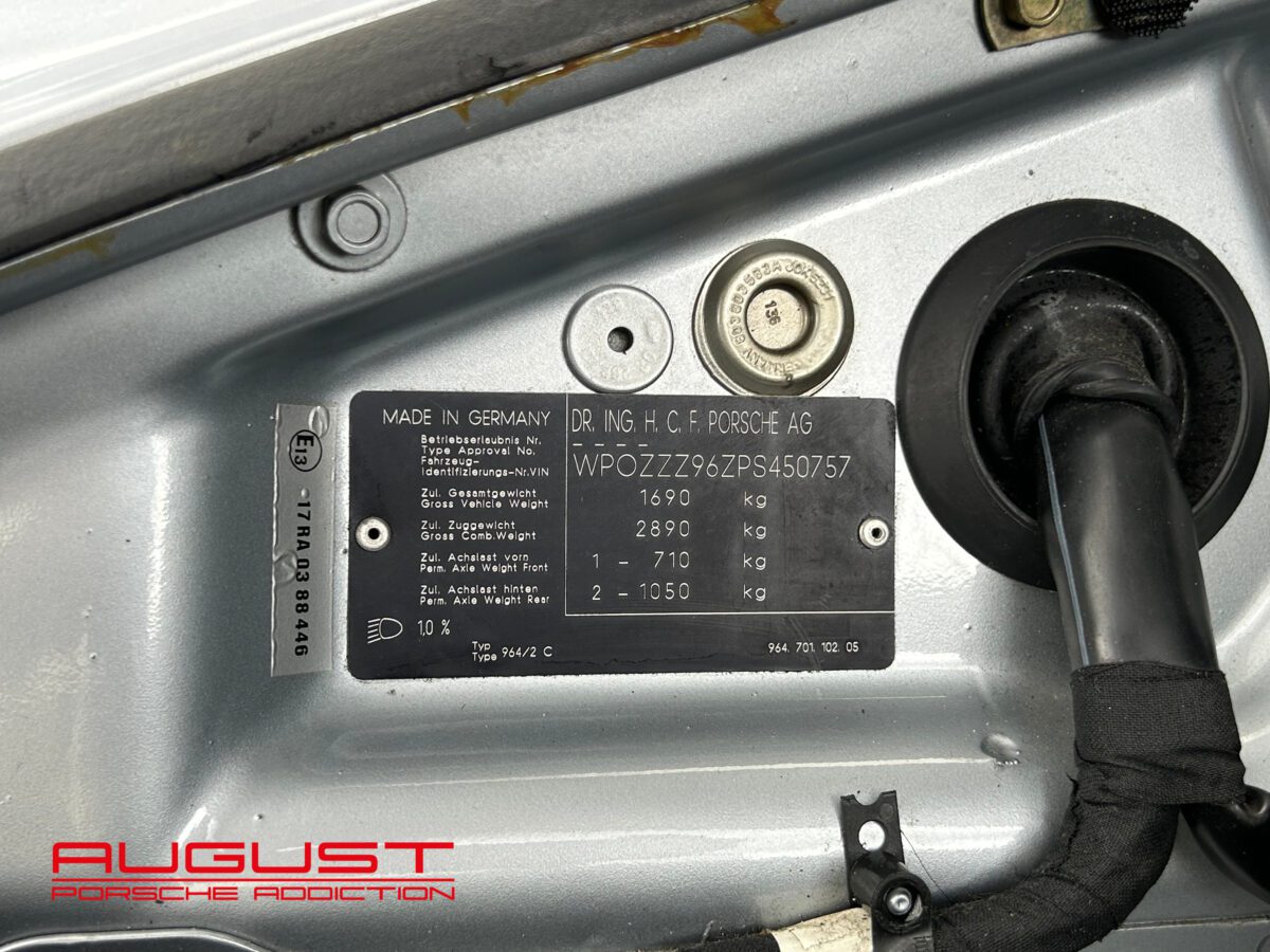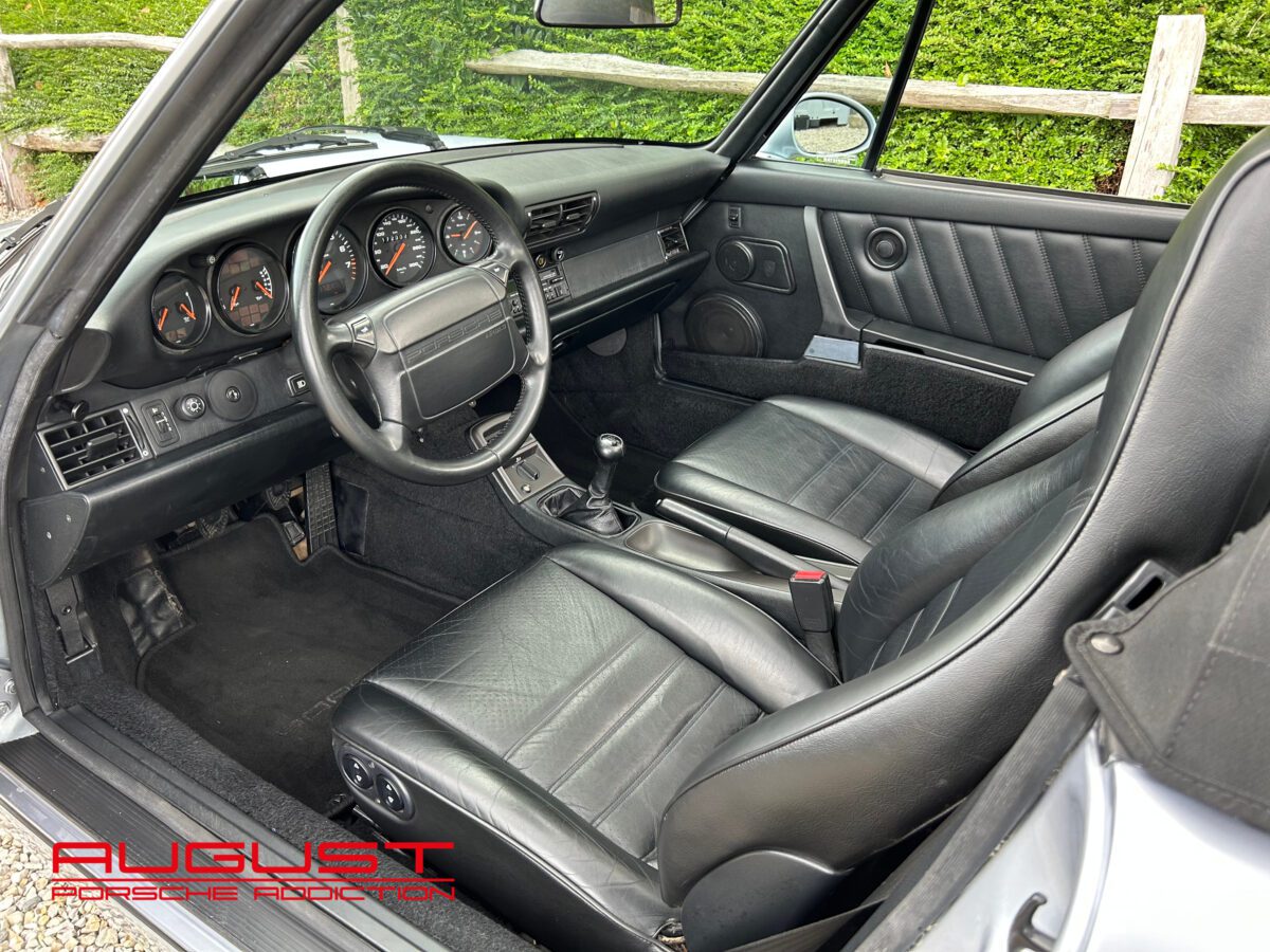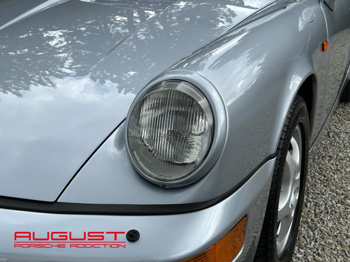 Porsche 964 Carrera 2 Cabriolet de 1993, livrée neuve en France le 03.03.1993. Dans sa configuration extérieure gris polaire, intérieur noir. Elle dispose de son carnet d’entretien complet, attestant d’un suivi limpide. Cette 964 à l’état de conservation exceptionnel et qui profite du régime ancêtre est équipée d’une boîte mécanique à 5 vitesses et des options suivantes :