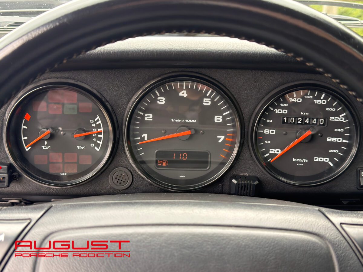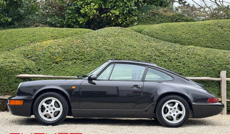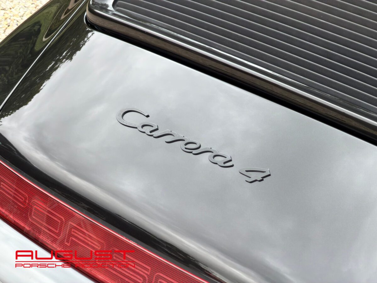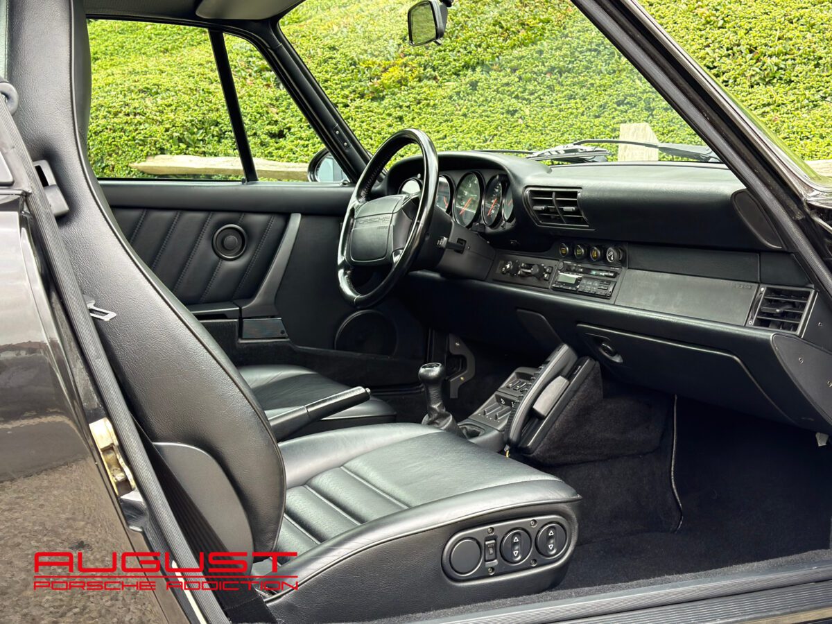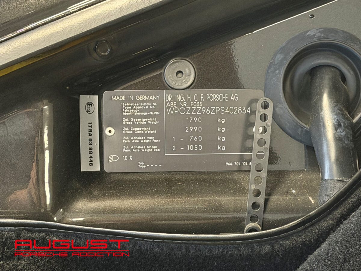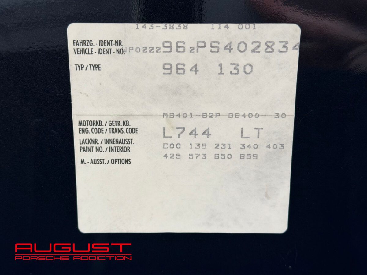 Porsche 964 Carrera 4 de 1993 livrée au centre Porsche de Francfort le 17.09.1993. Présentée dans son élégante configuration extérieur noire intérieur noire, elle est munie de toute sa documentation ainsi que de son carnet d’entretien complet qui en atteste son suivi limpide. Elle a eu une grosse révision à 100.959 km comprenant l’embrayage. Cette pure 911 qui a été vendue en 2017 chez August est munie de sa boite mécanique et est aussi équipée des options présentes ci-dessous :
