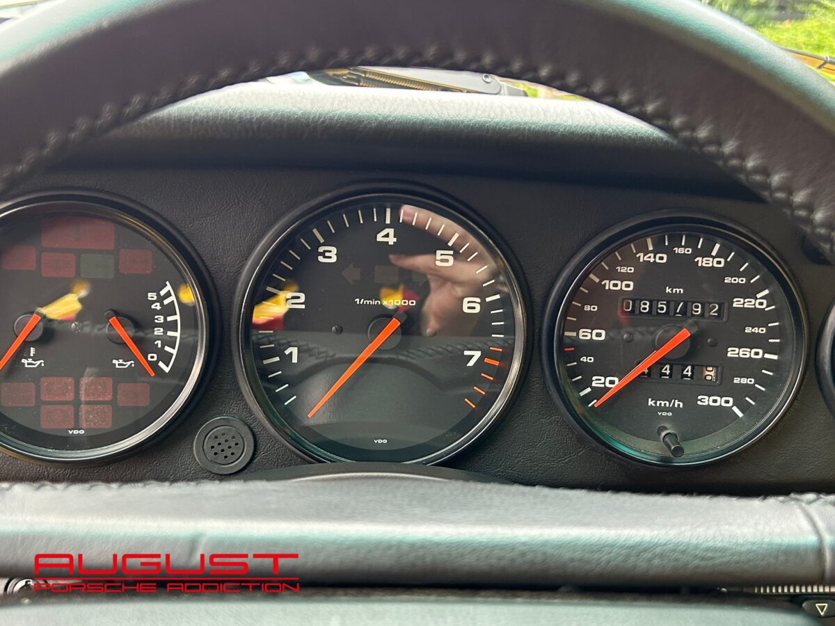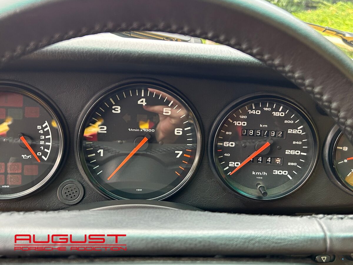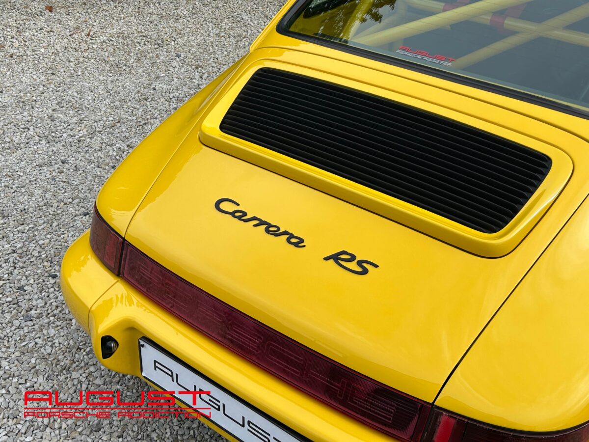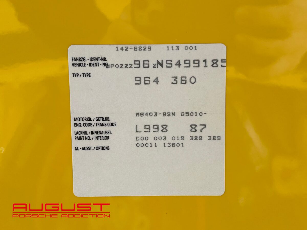 Porsche 964 RS NGT de 1992 livrée au centre Porsche de Stuttgart. Cette 964 ultra exclusive est présentée dans sa teinte très recherchée Jaune Ferrari. Millésime de ’92 ce collector a été conçu pour l’homologation du championnat N/GT et produit pour la Suisse, la Belgique et l’Allemagne. Avec 290 numéros de châssis réservés pour sa production, cela fait d’elle une version emblématique et rare de la 964 RS. Ultime 964 homologuée route, elle se distingue par son arceau soudé et ses sièges baquets. Connue chez August depuis 20 ans, elle est munie de sa documentation d’origine ainsi que de son carnet d’entretien.