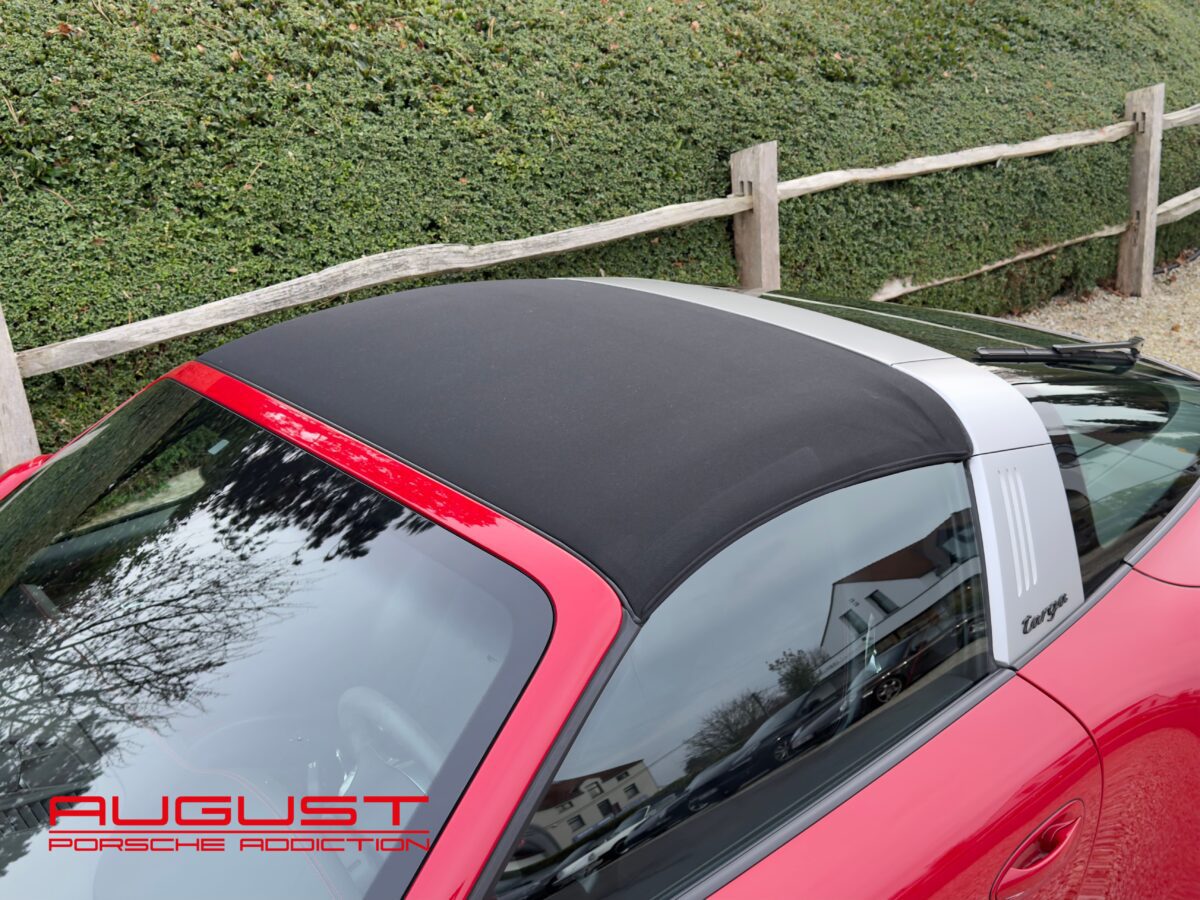 Livrée neuve au Centre Porsche Mechelen le 11.05.2015, cette Porsche 991 Targa 4 GTS est présentée dans sa teinte Rouge Carmin avec un intérieur GTS noir et surpiqûres rouges. Elle dispose de son carnet d’entretien et a toujours été suivie en Centre Porsche. Munie de nombreuses options, elle comprend notamment le Pack Sport Chrono Plus, l’échappement sport et plusieurs autres options listées ci-dessous.