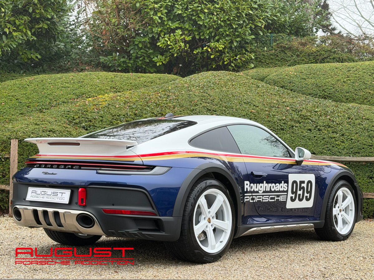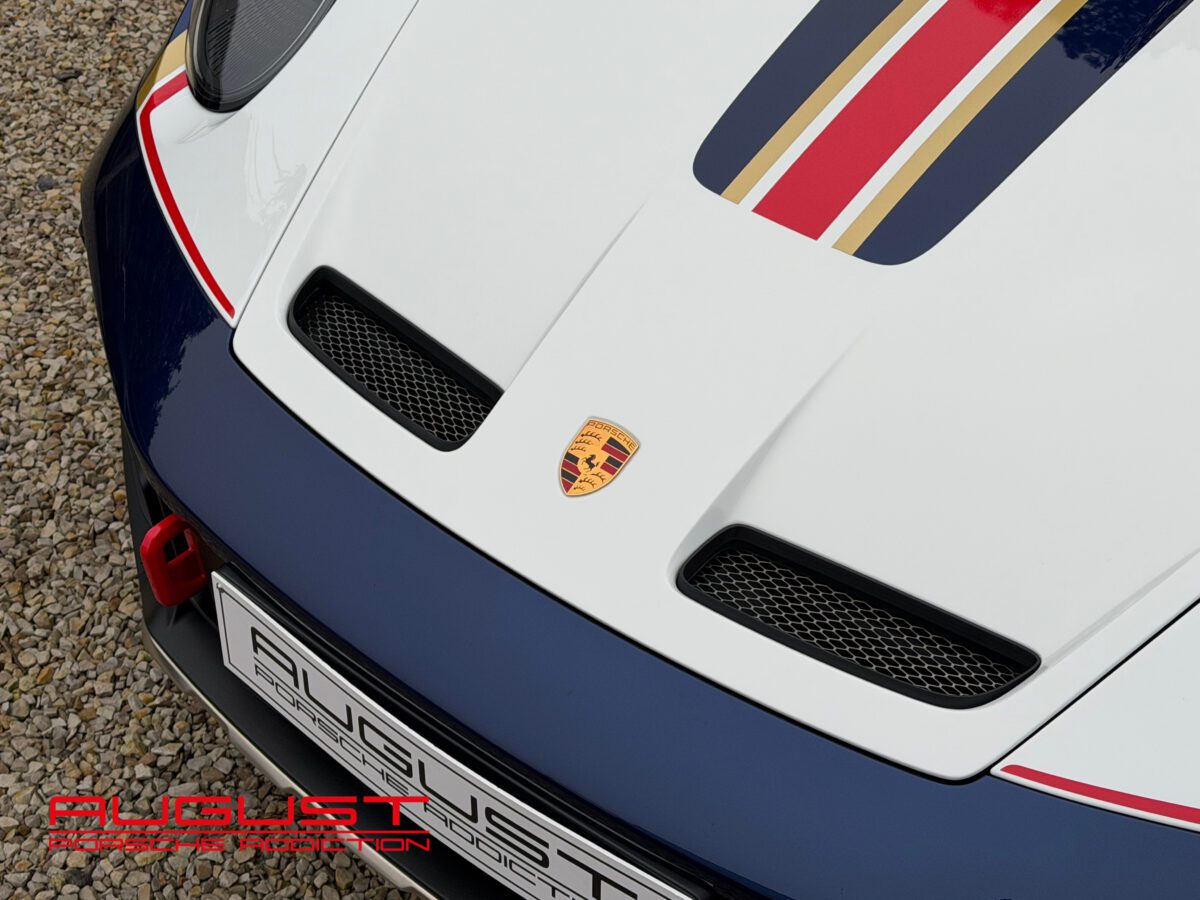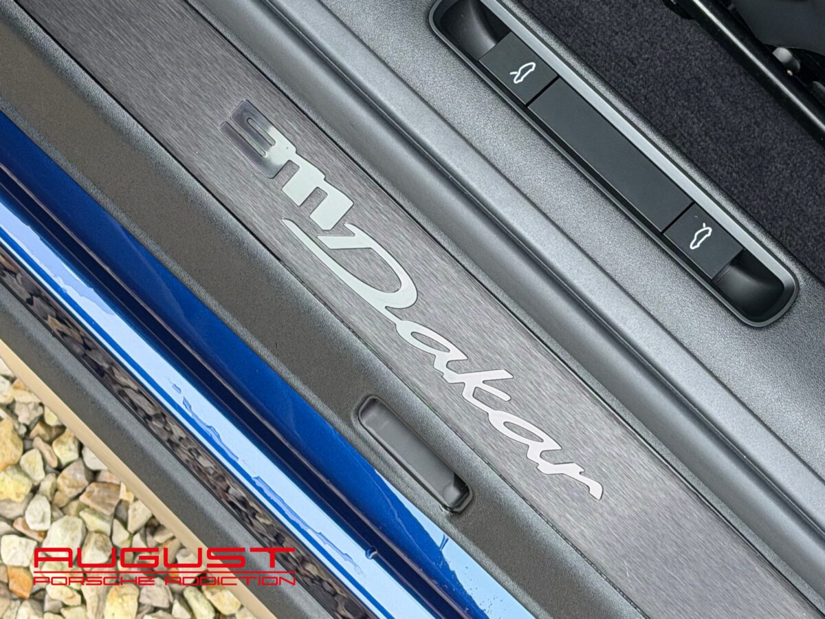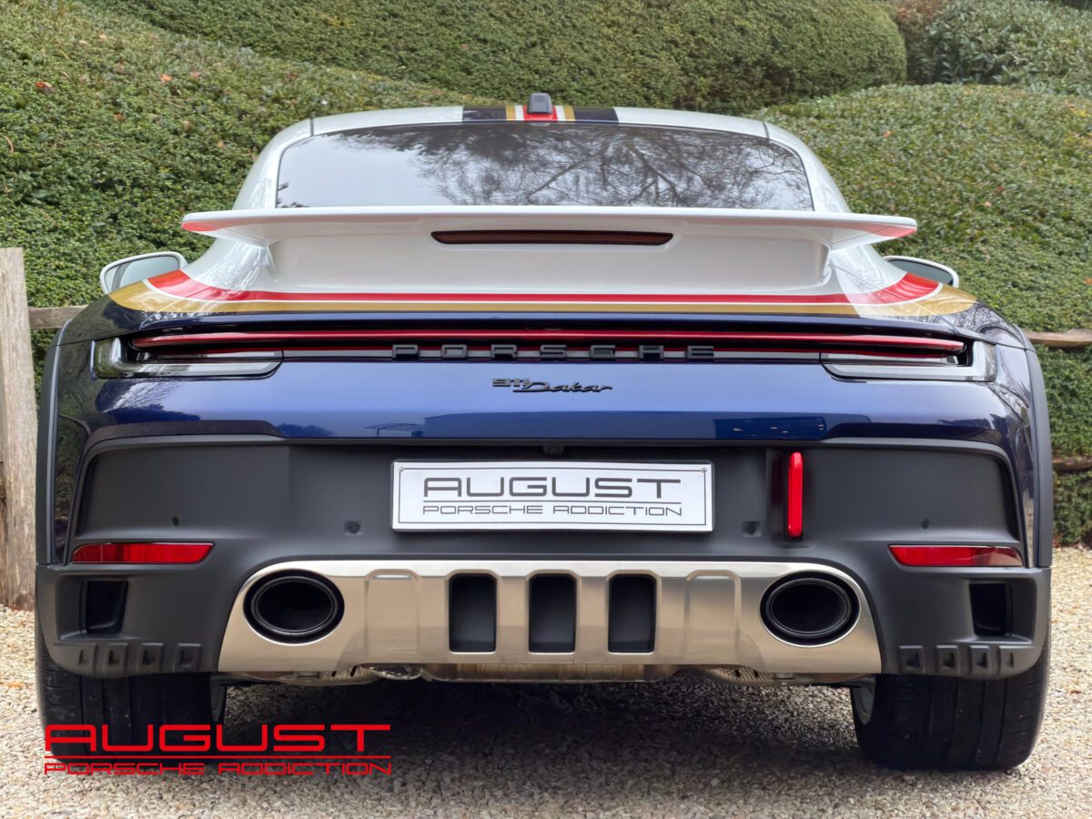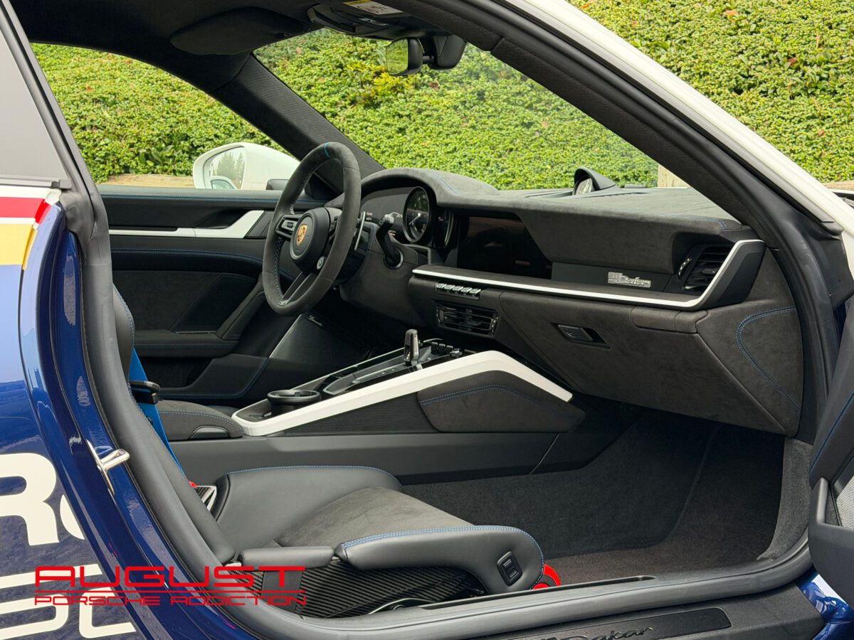 Livrée neuve au Centre Porsche de Liège le 01.08.2023, cette 992 Dakar au faible kilométrage est présentée dans sa configuration RoughRoads avec un intérieur en alcantara noir. Elle se distingue par sa série limitée à 2.500 exemplaires, tous numérotés. Arborant le numéro 959, celle-ci rend un clin d’œil à la mythique victoire de la Porsche 959 au Dakar en 1984. Elle est munie de son moteur bi turbo développant 480 CV et de sa boite PDK à 8 rapports. Cette emblématique 911 baroudeuse est notamment équipée de son Pack Sport Chrono Plus mais aussi de son Lift pouvant la rehausser de 80 mm. Elle est aussi équipée des options présentes ci-dessous :