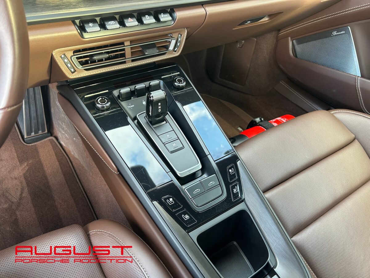 Livrée neuve au Centre Porsche Liège le 19/03/2024, cette Porsche 992 Targa 4 GTS dans une élégante teinte Gris Agate, parfaitement assortie à l’intérieur en cuir Truffle Brown. Affichant seulement 9.036 km au compteur, l’auto est dans un état proche du neuf et bénéficie du pont arrière avec blocage de différentiel ainsi que du Pack Sport Chrono Plus.