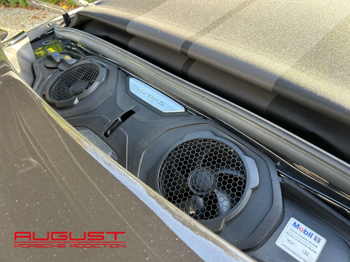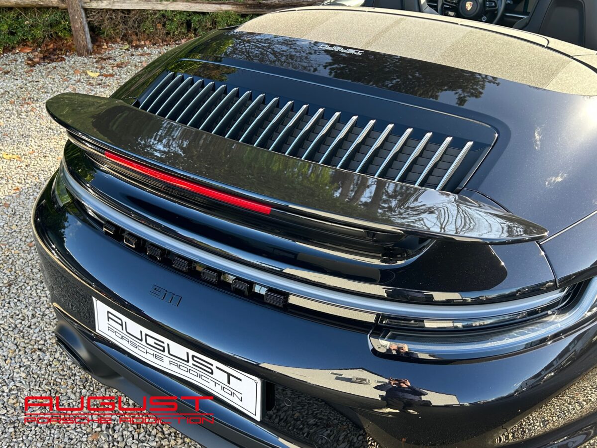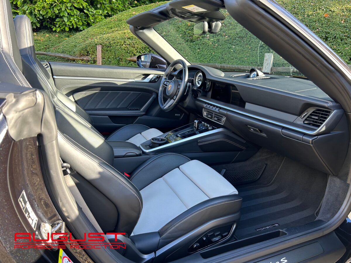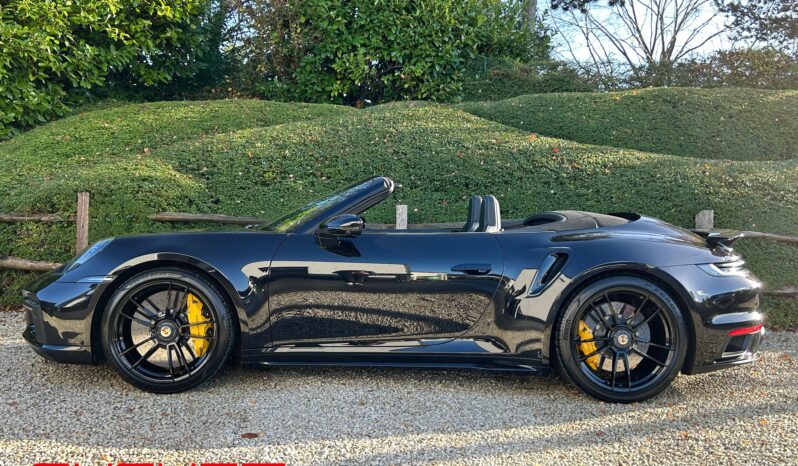 Livrée neuve en Allemagne, cette 992 Turbo S Cabriolet arbore une teinte extérieure noire, assortie à un intérieur en cuir bicolore noir et blanc, avec un rappel de couleur sur la carrosserie et la capote. Très exclusive grâce à sa configuration spécifique, elle se distingue immédiatement avec son caractère unique. Équipée de la boîte automatique à 8 rapports, elle offre une expérience de conduite à la fois pure et immersive. L’auto est munie des options présentées ci-dessous :