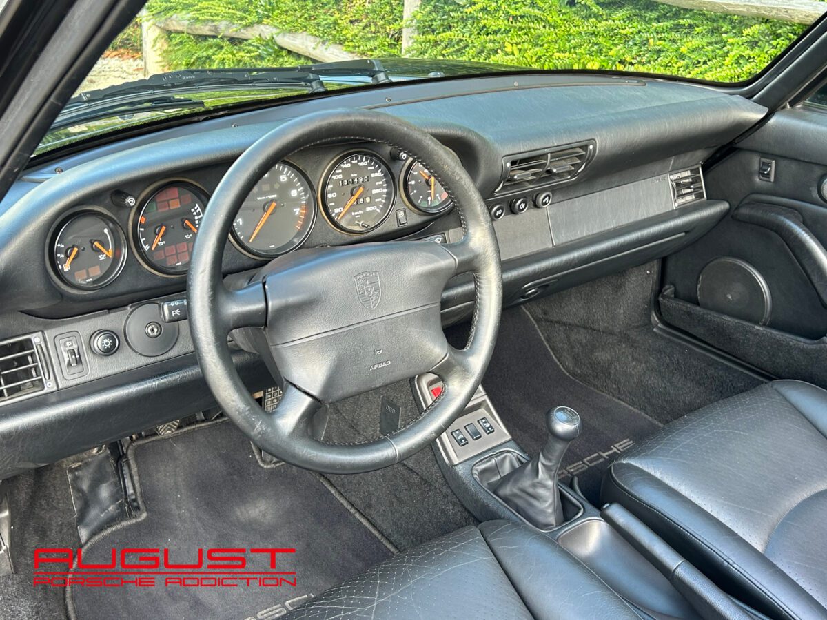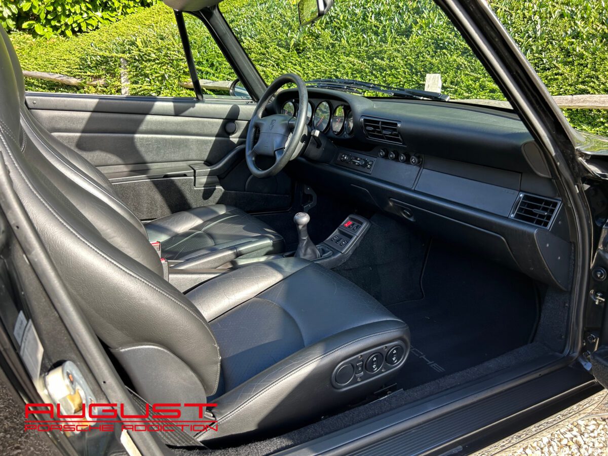 Livrée neuve le 6 février 1995 au Centre Porsche de Kassel, cette 993 Cabriolet se présente dans une élégante configuration noire intérieur noir. Équipée d’une boîte manuelle, elle bénéficie du régime ancêtre. L’auto dispose de son carnet d’entretien complet, ainsi que d’une farde de factures retraçant son historique. Elle est munie des options suivantes :