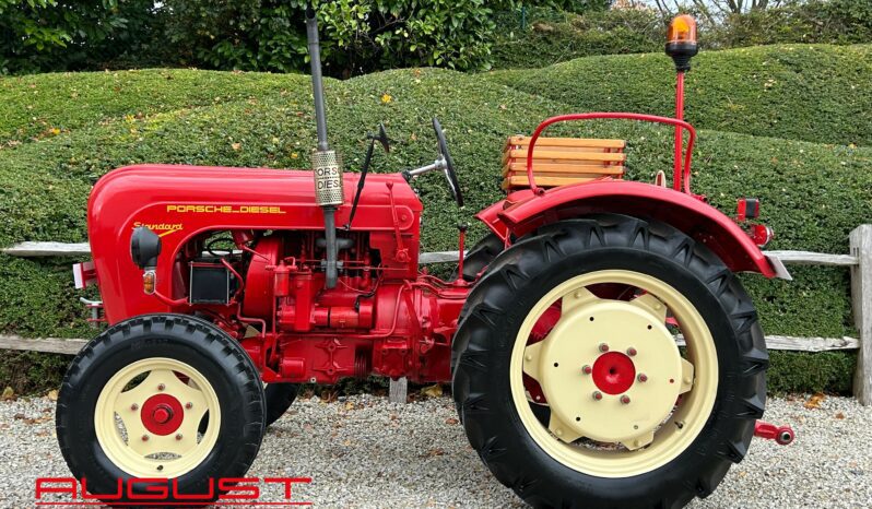 Porsche-Diesel Standard 218 livré en 1960, est produit entre 1957 et 1963 par Porsche-Diesel Motorenbau. Successeur du type 208, il fait partie de la troisième génération des tracteurs Standard à deux cylindres. Son moteur bicylindre refroidi par air et sa fiabilité en ont fait l’un des modèles les plus populaires de la marque. Son frein à mâchoires arrière, commandé au pied, pouvait être utilisé normalement ou individuellement pour aider à diriger le tracteur. Cet exemplaire est accompagné de l’ensemble des documents nécessaires à son immatriculation.