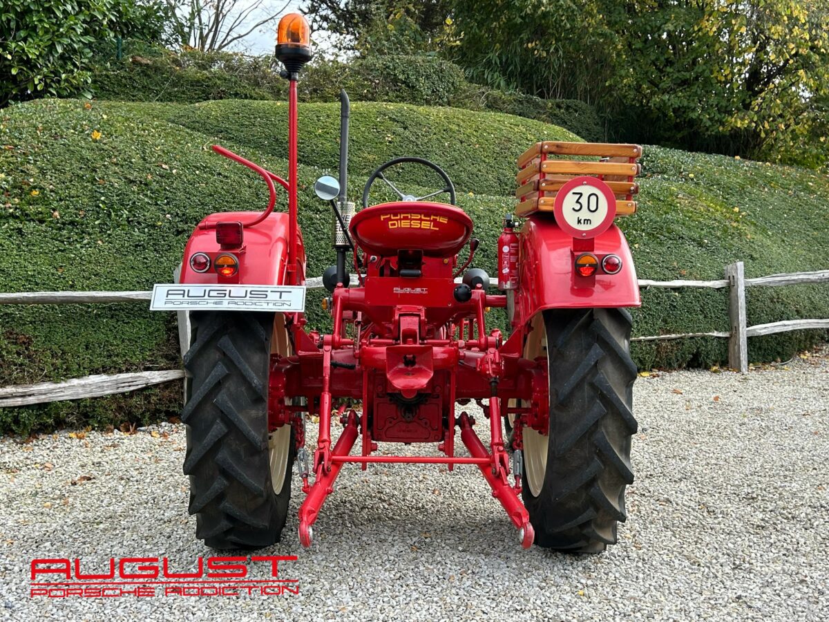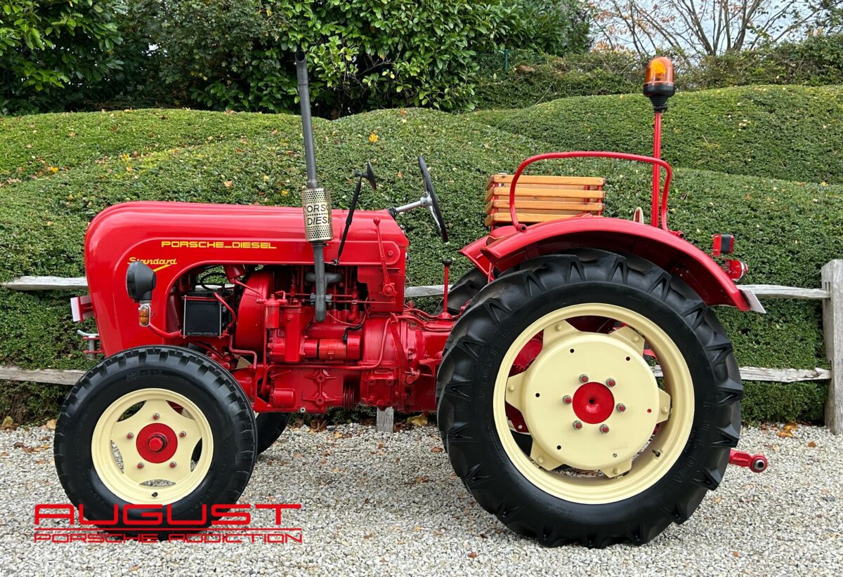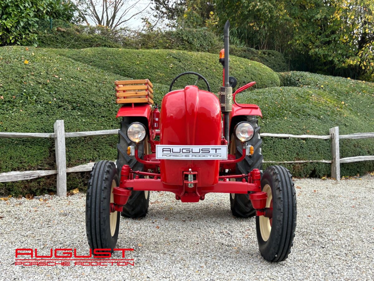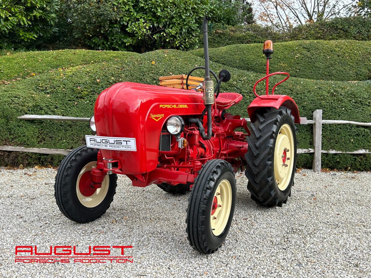 Porsche-Diesel Standard 218 livré en 1960, est produit entre 1957 et 1963 par Porsche-Diesel Motorenbau. Successeur du type 208, il fait partie de la troisième génération des tracteurs Standard à deux cylindres. Son moteur bicylindre refroidi par air et sa fiabilité en ont fait l’un des modèles les plus populaires de la marque. Son frein à mâchoires arrière, commandé au pied, pouvait être utilisé normalement ou individuellement pour aider à diriger le tracteur. Cet exemplaire est accompagné de l’ensemble des documents nécessaires à son immatriculation.